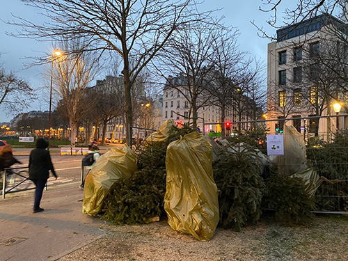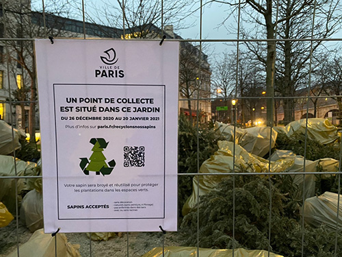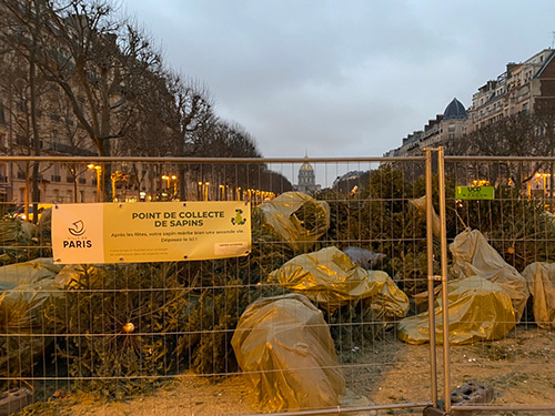 これは、12月26日から1月20日まで、 いらなくなったもみの木を持っていけるように 区ごとにパリ市内のあちこちに設置され、 もみの木がリサイクルされるシステムです。
