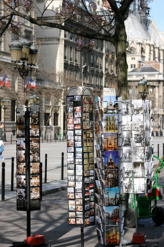 ▲観光地のあちこちにあるパリのおみやげもの屋さん。 パリの思い出になるポストカード、キーホルダー、 マグネット、エコバッグ、置き物、グラス、ライター、 ありとあらゆるモノが売っていたけれど、 最近はお客さんもいなく全く元気がありません。