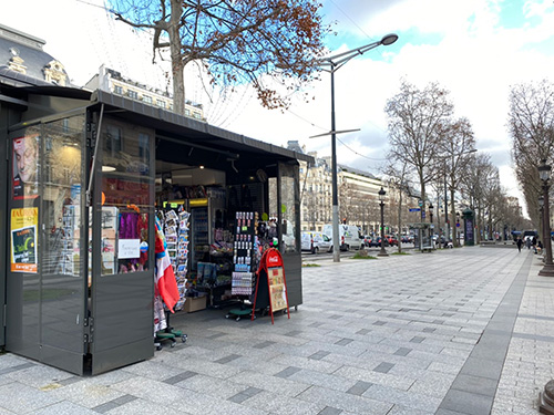 ▲閑散とした、シャンゼリゼ通りのおみやげもの屋さん。