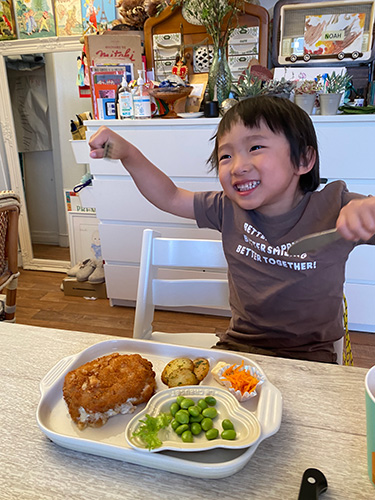 ▲今日も大好きなコルドン・ブルーで テンション上がりまくりの息子。