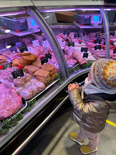 ▲お肉屋さんに来ればコルドン・ブルーを買ってくれとせがむ息子。
