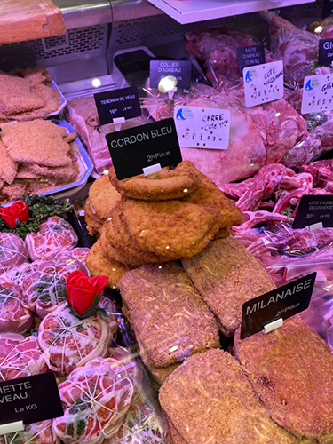 ▲こちらは肉屋のコルドン・ブルー。例えば個のお店では1つ2.9ユーロ(約380円)。 肉屋さんで売ってるものなので結構本格的。