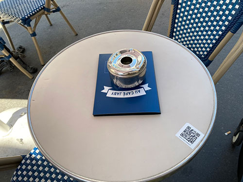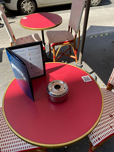 ▲とにかくテーブルでQRコードを見ることが最近増えたパリ。