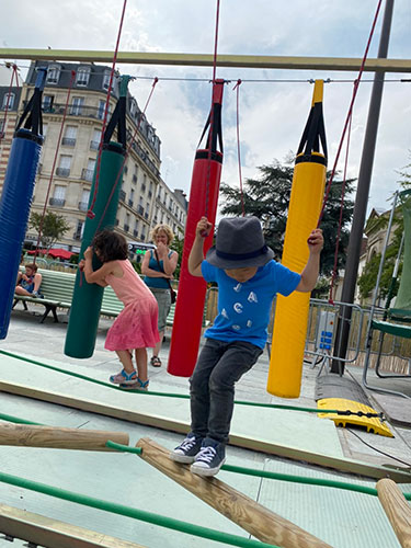 ▲市役所前に夏休み期間限定で登場していた子ども用プレイパーク。