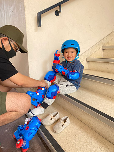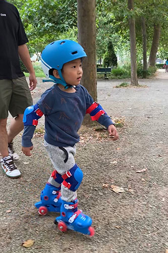 ▲人気のローラースケートは本当にしょっちゅう子どもたちがやっているのを 街中で見かけるので、我が家のプチモンスターも「やりたい!」となり、ちびっ子用を購入。