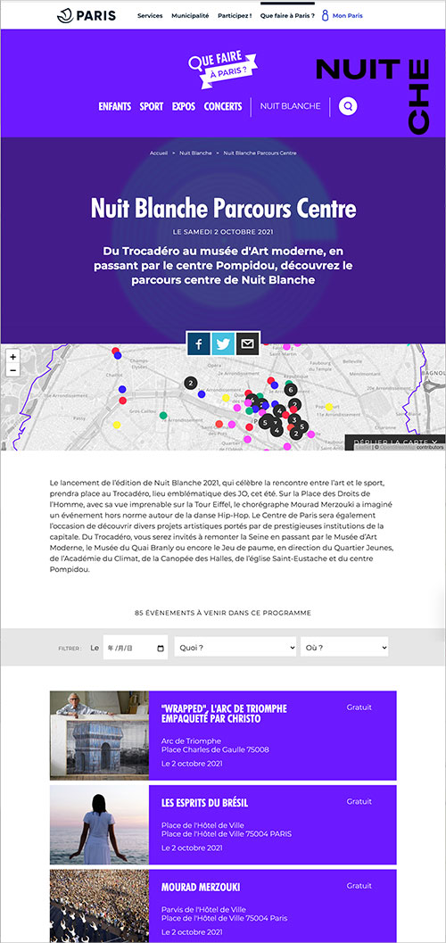 ▲パリ市のサイトには、数え切れないほどのイベントの紹介が。 ニュースで見た方も多いのではないかと思いますが、 凱旋門をラッピングするプロジェクトも紹介されています↑。 ライトアップを見にいかなくては!