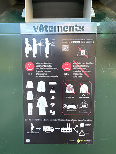 用がなければ何気なく通り過ぎてしまいますが、 よく観察すると、結構あちこちで見かけます。 パリだけでなく、フランス全土に このような洋服リサイクルボックスがあるのです。