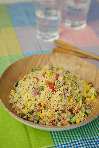 みなさん、 クスクスって食べたことがありますか?? デュラム小麦から作られる粒で、 蒸したり、熱いお湯やブイヨンスープで 柔らかくして食べるよ。