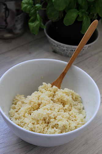 ▼これは乾燥クスクスを蒸した物。これを付け合わせにしたり、サラダにしたり。 フランスではしょっちゅう登場する「スムール」。