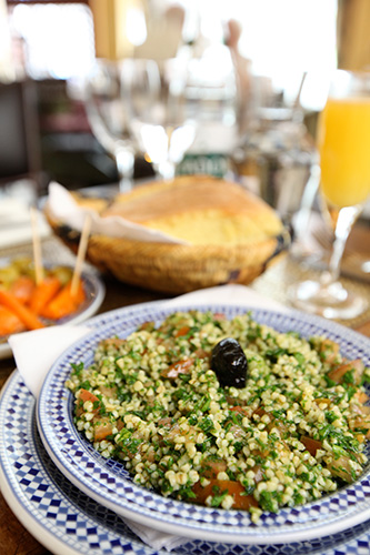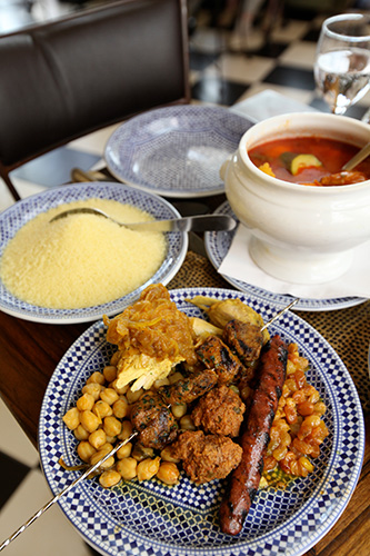 ▲こちらがフランスではあちこちで食べられる「クスクス」のレストランの様子。 たっぷり野菜を煮込んだスープ、肉やソーセージ、ひよこ豆などを 「スムール」にかけていただきます。