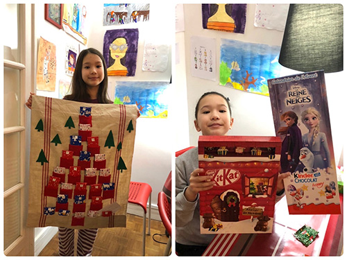 ▲この子のように、スーパーで売っているチョコバージョンと、 おばあちゃんやお母さんの手作りアドベントカレンダーの両方を楽しむ家庭も多い。