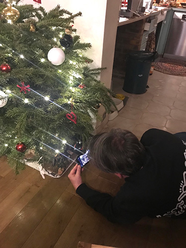 ▲子供たちのためにサントン人形をセッティングする友人パパ。