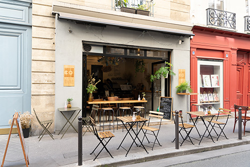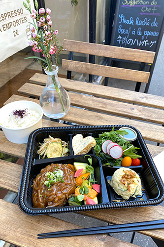 ▲ランチどきには行列のできるおしゃれな日本のお弁当屋さん。 パリに本当に増えていて、嬉しい限り! ここもお弁当屋さんには見えないくらいおしゃれ♪ その場で食べる人もテイクアウトする人も。