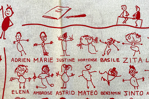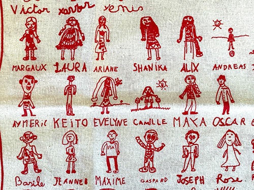 子どもたちの描いた絵が なんともいえない味わいで、 フランスの学校あるあるの とても素敵な企画なのです。 (ちなみに、 やるかやらないかは学校の方針なので、 一度もやったことがないという人もいれば、 毎年色々なグッズを作るという学校も。)