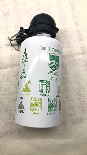 ▲人物を描くことがほとんどですが、小学校高学年ともなると こんな風に違うものを描くバージョンもあるようで、 パリのモニュメントを描いた水筒。こちらも素敵。