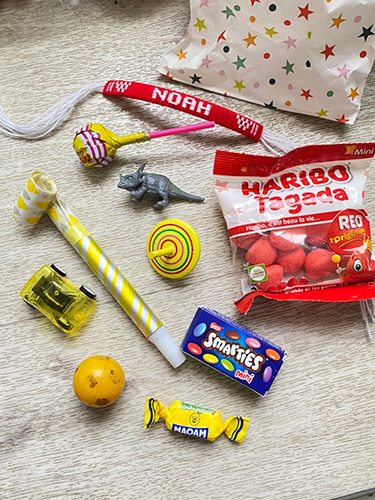 ▲お誕生会の帰りには、こんな感じでお菓子やおもちゃのミニ詰め合わせセットを お土産でもらったりするのが典型的なパターン。