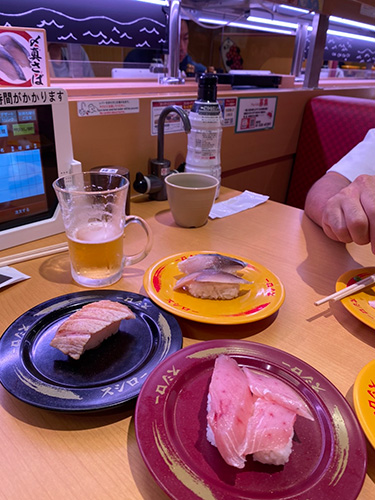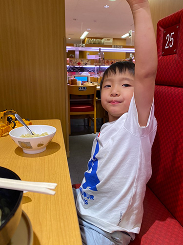 ▲ファミレスも回転寿司も楽しい大イベント。 フランスじゃなかなか食べられないものを食べる喜びと同時に、 ロボットが料理を運んでくるとか日本の進化にビックリ大興奮。