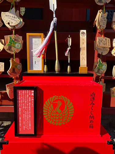 ▲「凶運みくじおさめ箱」にまでお世話になった今回のおみくじ‥‥。 ある意味色々見せてあげられたからよかった‥‥?!