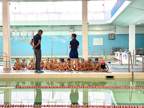 「なんでコーチがプールに誰も入らないの?」 と、フランス人のママたちにも (ちなみに、プチモンスターの幼稚園が