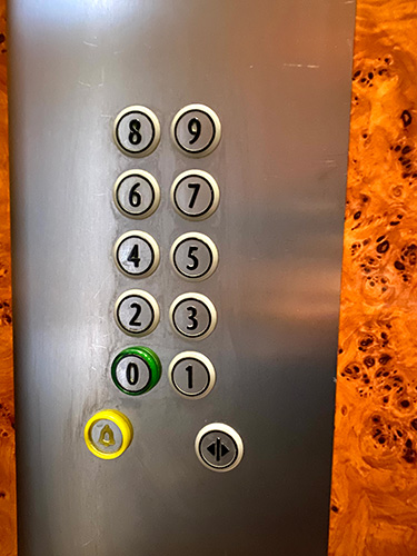 ▲パリのアパルトマンのエレベーターの中。日本での「1階=地上階」は「0」。 これはフランス語表記で「RC」と表されることも。 地下は「−1」「−2」と表記されています。