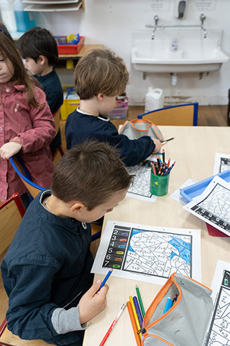 ▲幼稚園のお勉強時間中、時間が余った人は「魔法のぬりえ」をするとか、 このグループは「魔法のぬりえ」をして待っているとか 楽しいお勉強という位置付けでよく使われる知育ぬりえ。