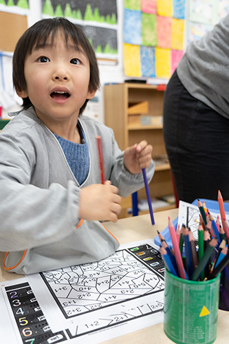 ▲年長さん用になると足し算やアルファベットを読んで色を理解するという要素が加わり ちょっとレベルアップ。