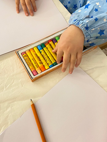月に1回くらいのペースで、 フランス現地の幼稚園に 撮影に行っていますが、 教室の中で目にするのも、 色鉛筆やペンばかり。 絵の具を使うことももちろんありますが、 クレヨンでの作業は見たことがありません。 (おそらく教室にクレヨン自体がない。)