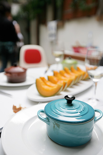 デザートのフルーツとしてはもちろんですが、 フランスではアペリティフや前菜として 登場することがとっても多い。 生ハムを乗せて、サラミなどと一緒に 甘辛甘辛‥‥。 クリームチーズやメロンを使った 前菜の冷製スープにetc。 食事の場に登場することが多いんです。