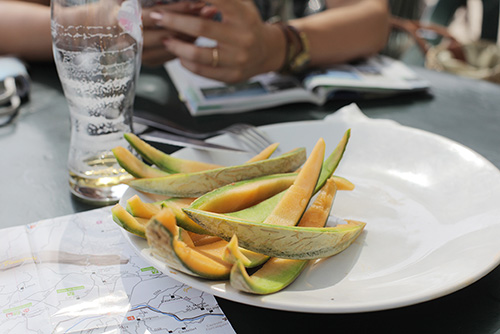 ▲フランスのメロンの産地カヴァイヨンの近隣の シャンブルドット(フランスのペンションのような宿泊施設)の 朝食を見返すと、どこの朝食にもメロンが登場しています。