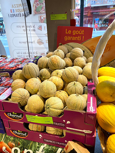 日本では高級フルーツのイメージのあるメロン。 フランスでは全く逆です。 山積みにされたメロンが 叩き売り価格で売られていて 気軽にバクバク食べられるんだ♪