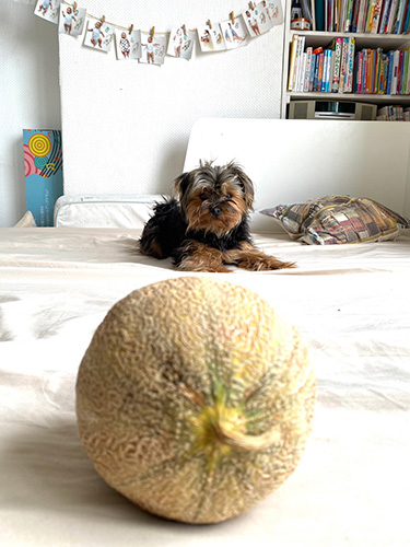 ▲バブーとメロンを記念撮影しようと思ったら、初めてのメロンにめちゃ警戒して なかなか近づいてこない笑。