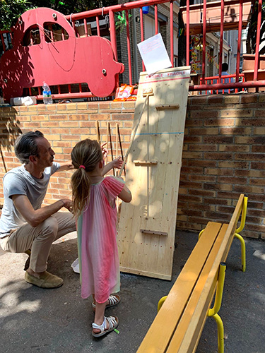 ▲石けんを上手に上まで上げて下まで下げるゲーム。 手作り感満載なのも「ケルメス」の楽しいところ。