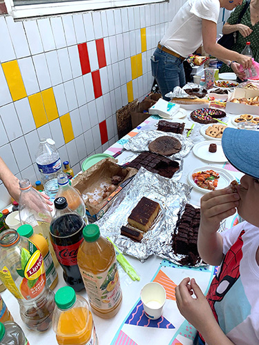 ▲親たちが手作りのものや買ったものを持ってきたり。 私調べによると公立はゲームも飲食も無料、 私立は全て有料というところがほとんどでした。 私立の大規模校になるほど飲食関係の業者もたくさん入るようです。
