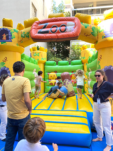 ▲フランスの遊園地やイベント会場でお馴染みの 空気で膨らませた中を飛び回り走り回る「シャトー・ゴンフラブル」。 ちょっと大掛かりな遊びに子どもたちは大興奮。