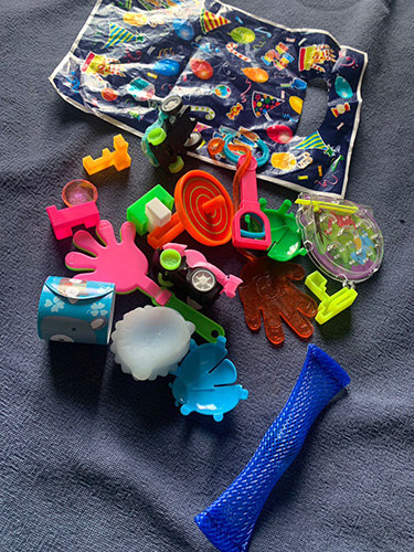 ▲息子がもらってきたものたち。 こんな感じで小さなおもちゃ(大人からみたらガラクタだけれども、 子どもから見たら宝物な小さなものたち)が入ってます♪