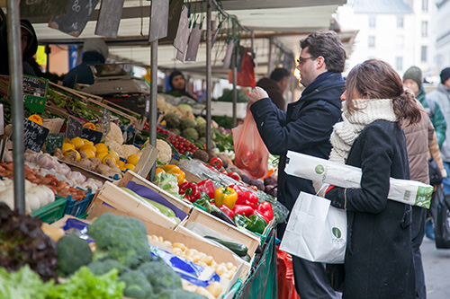 ▲『鴨の寒さ』でも元気いっぱいのパリのマルシェ。美味しいものを食べて心も体もポカポカに。