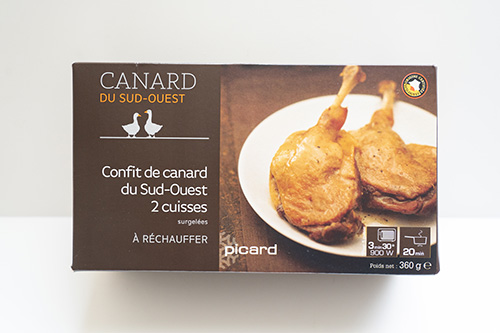 ▲日本にもある冷凍食品スーパー「Picard」(ピカール)で売っている『鴨のコンフィ』と 付け合わせの『じゃがいも』。 (通常、オイル漬けにしたときのオイルとニンニクパセリで炒めたじゃがいもと一緒にいただきます。) もし入荷しているのを見かけたらぜひお試しを! の美味しさです 。