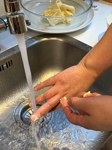 ▲学校のママ友たちと定期的に開催されるようになった「ご飯やお菓子を作ろうの会」。 玉ねぎの皮を手で剥いていたらビックリされたり 日本の当たり前と違うところがしょっちゅう登場して、 このコラムに書きたいことがザクザク出てくる♪