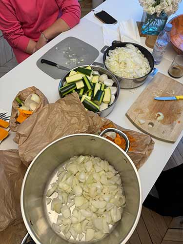 息子のフランスの小学校のママ友たちと 最近、定期的に開催されている お料理教室(という名のおしゃべり&ご飯会)。