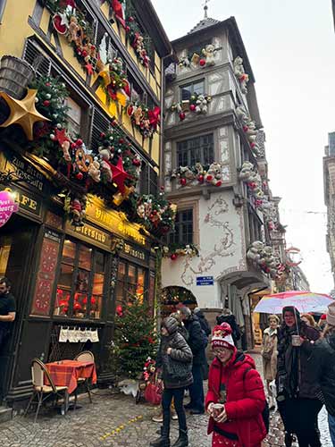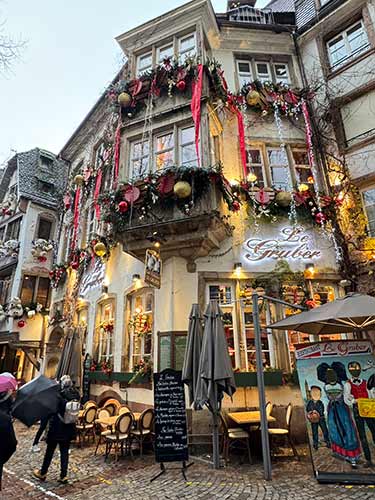 ▲旧市街のどこもかしこもがクリスマスデコレーションでいっぱいになる アルザス地方の街「ストラスブール」。 まるで建物自体がクリスマスプレゼントになっているように豪華です。