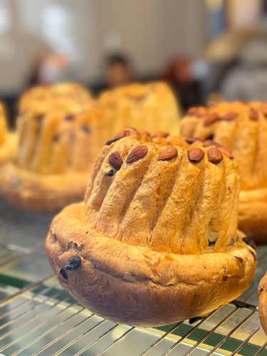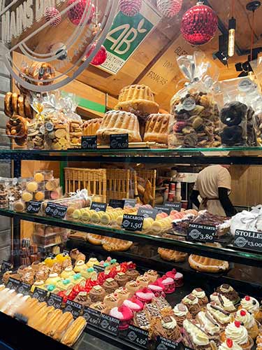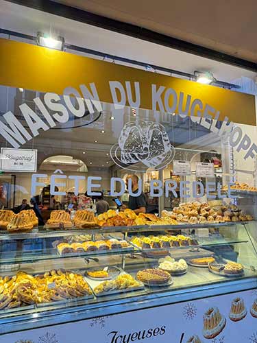 ▲この地方の名物のひとつ、「クグロフ」。 どこのパン屋でもパティスリーでもころんとしたクグロフが並んでいます。