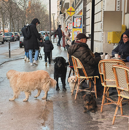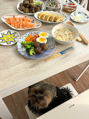 ▲風邪が大流行しているパリ。とにかく栄養満点の野菜いっぱいメニューにしてね。 風邪でダウンしないように気をつけているよ。ボクはおこぼれを狙っているよ。