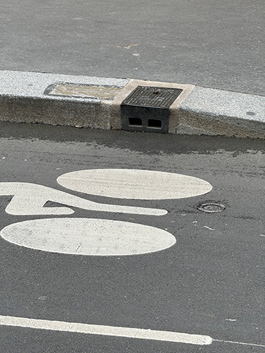▲道路をよく見ると、こんな風に掃除専用の水栓があって、 ここから勢いよく水が流れ出て道路脇のゴミを一気に運んでいくのです。