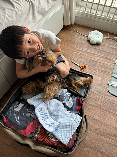 さて、そんな我が家のプチモンスターくん。 今週は学校の林間学校に出かけているよ! この前このコラムで紹介した 最終日の夜のダンスパーティー用の 『オシャレな洋服』 もスーツケースに入れてね(笑)。