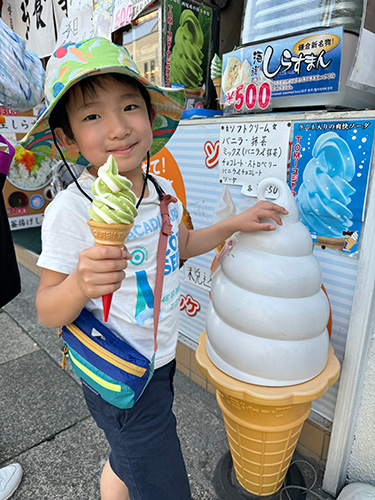 でもね、日本の学校のバカンスは 今回、ボクたちはフランスの4月の そうそう、それからもうひとつ! でも、買ったはいいけれど、 日本でも、観光地でアイスやスイーツを 学校の校門を出たら 「電車やバスの中では食べない方がいいよ。」 そんな文化や習慣の違いを知るという意味でも ボクに会うために、東京のフランス雑貨のお店
