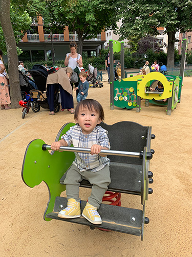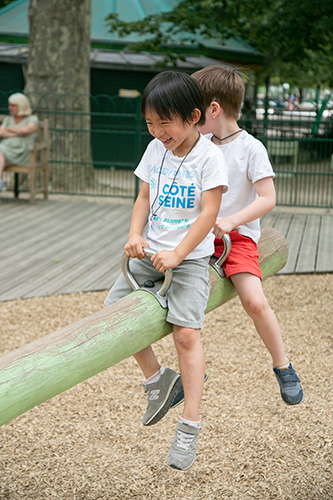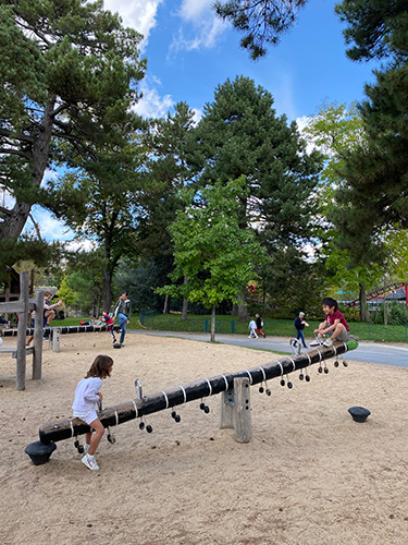 パリのあちこちの公園にある、 子どもたちを遊ばせる遊具スペース。 「ママ、こっち来て! 見てて!」 「ママ、押して!」 と呼び出されることも多いのですが、 いつも戸惑うのが 「次はbalançoire(バランソワール)!」 という言葉。