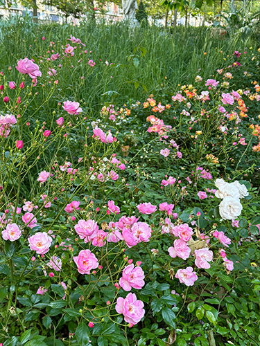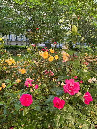 ▲家の目の前の小さな公園にも色々な種類のバラがいっぱい。 公園を通り抜けるだけでしあわせな気分になる今の季節のパリ。