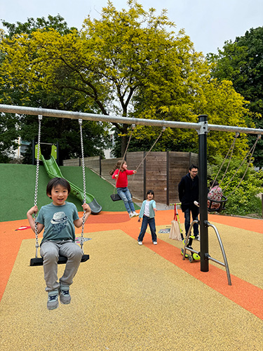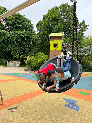 「はいはい、ブランコ押して欲しいのね。」 と思ってブランコの方に行こうといたら シーソーに飛び乗っていて 「そっちかい!」 ってなったり、 「次はバランソワールやろう!」 って誰かの言葉に反応して走っていく 子どもたちが『ブランコ』と『シーソー』、 違う「バランソワール」の方に 散り散りになって行くのを目撃したり。