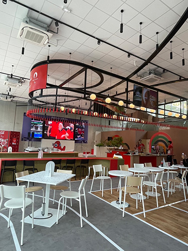 ▲スポンサー企業のドリンクが飲み放題だってたりゲームをしたりくつろいだりする部屋も。 選手村にはパン屋も設置されていて、焼きたてのパンはいつも争奪戦ですぐ売り切れるそう!