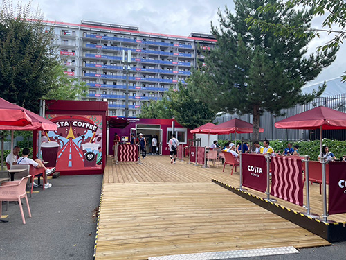 ▲各国の建物。 部屋の中には東京オリンピックでも話題になった段ボールベッドが使われているそう。 プラスチック極力NGなフランスのエコ意識にはぴったりな段ボールベッド。
